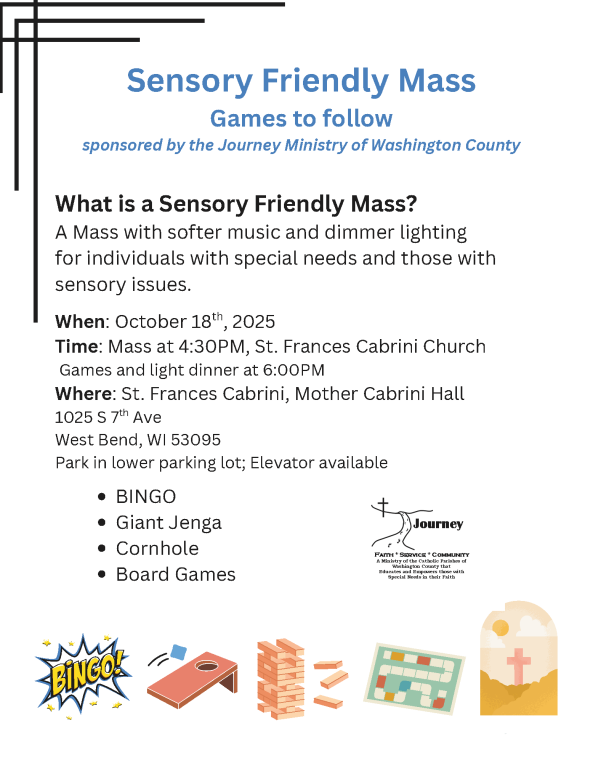 The entire Mass is broadcasted inside the church on a local FM station. Receivers are available for you to use over your hearing aids during Mass (ear hooks are provided) or bring your own earpiece. Ask an usher if you need assistance!